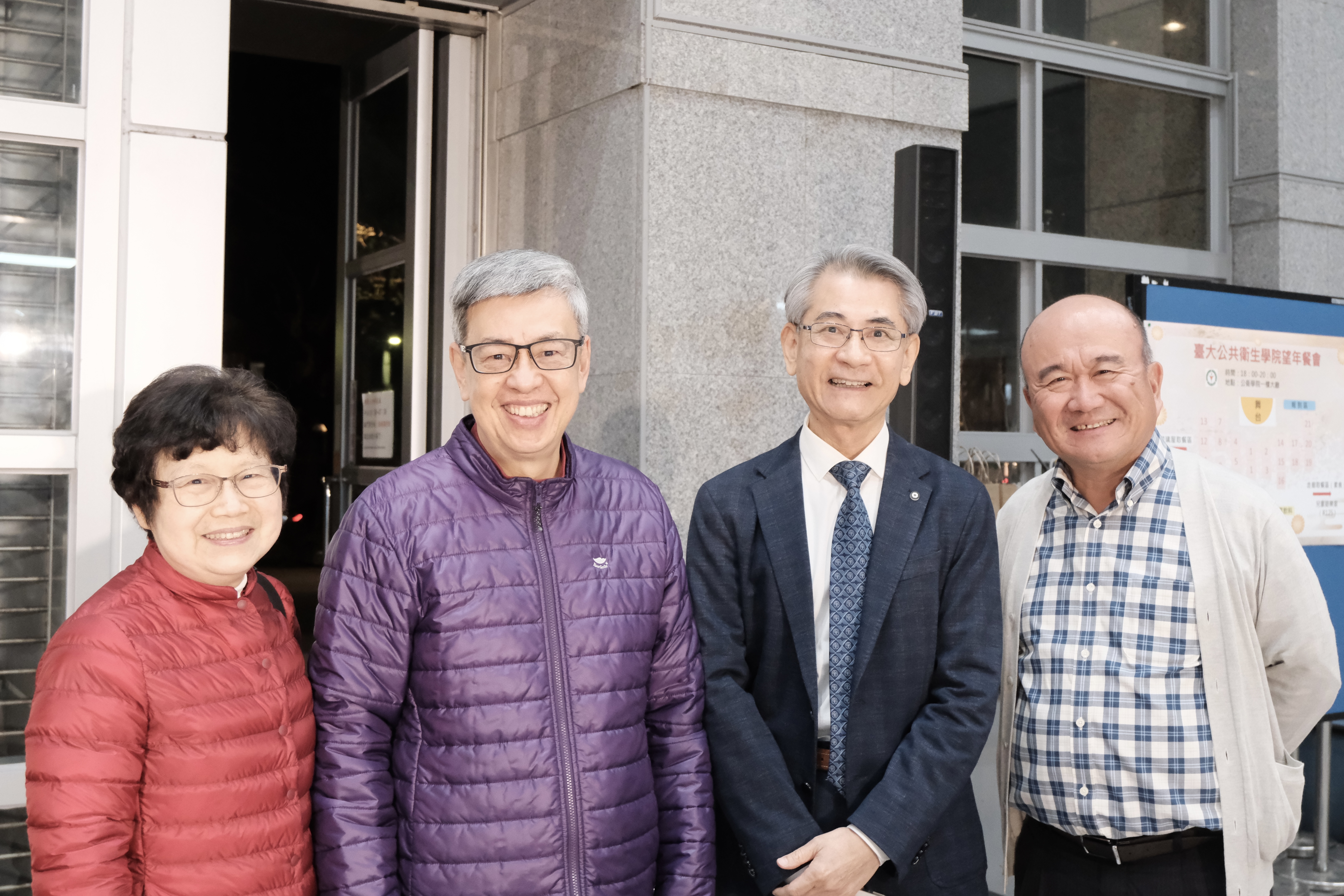 圖 羅鳳蘋女士(左一)、陳建仁前副總統(左二)、鄭守夏院長(右二)與簡國龍老師(右一)合影